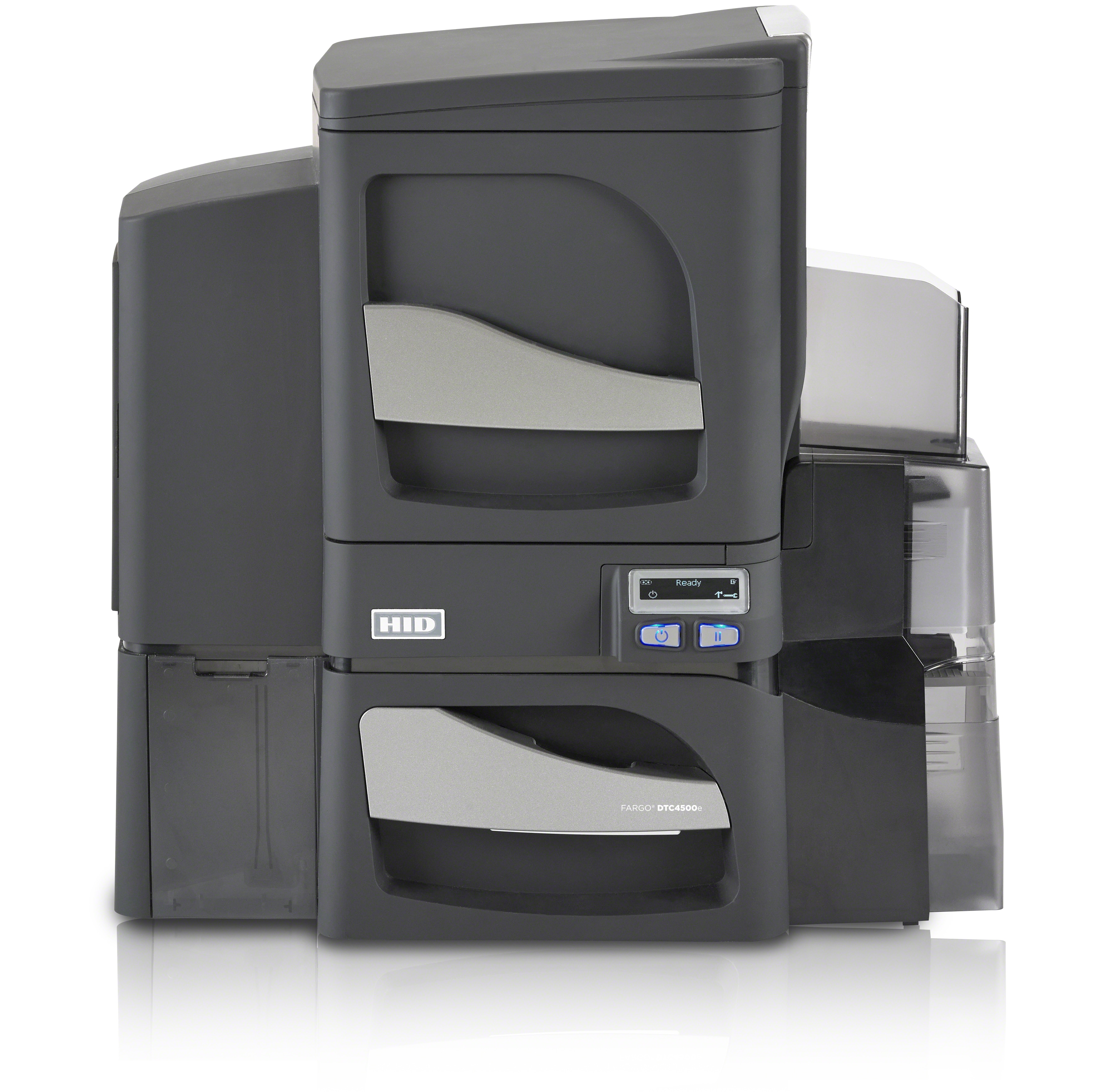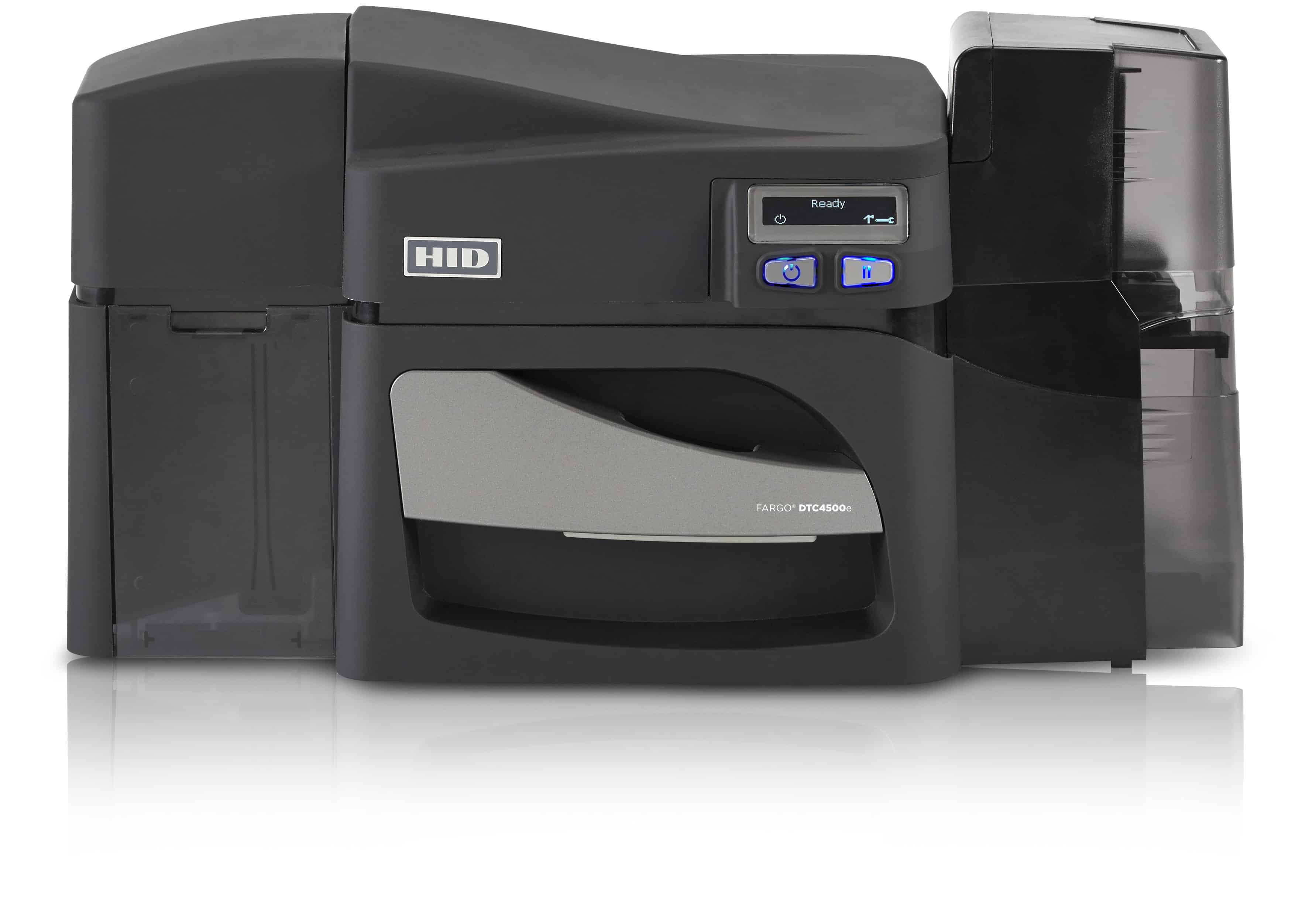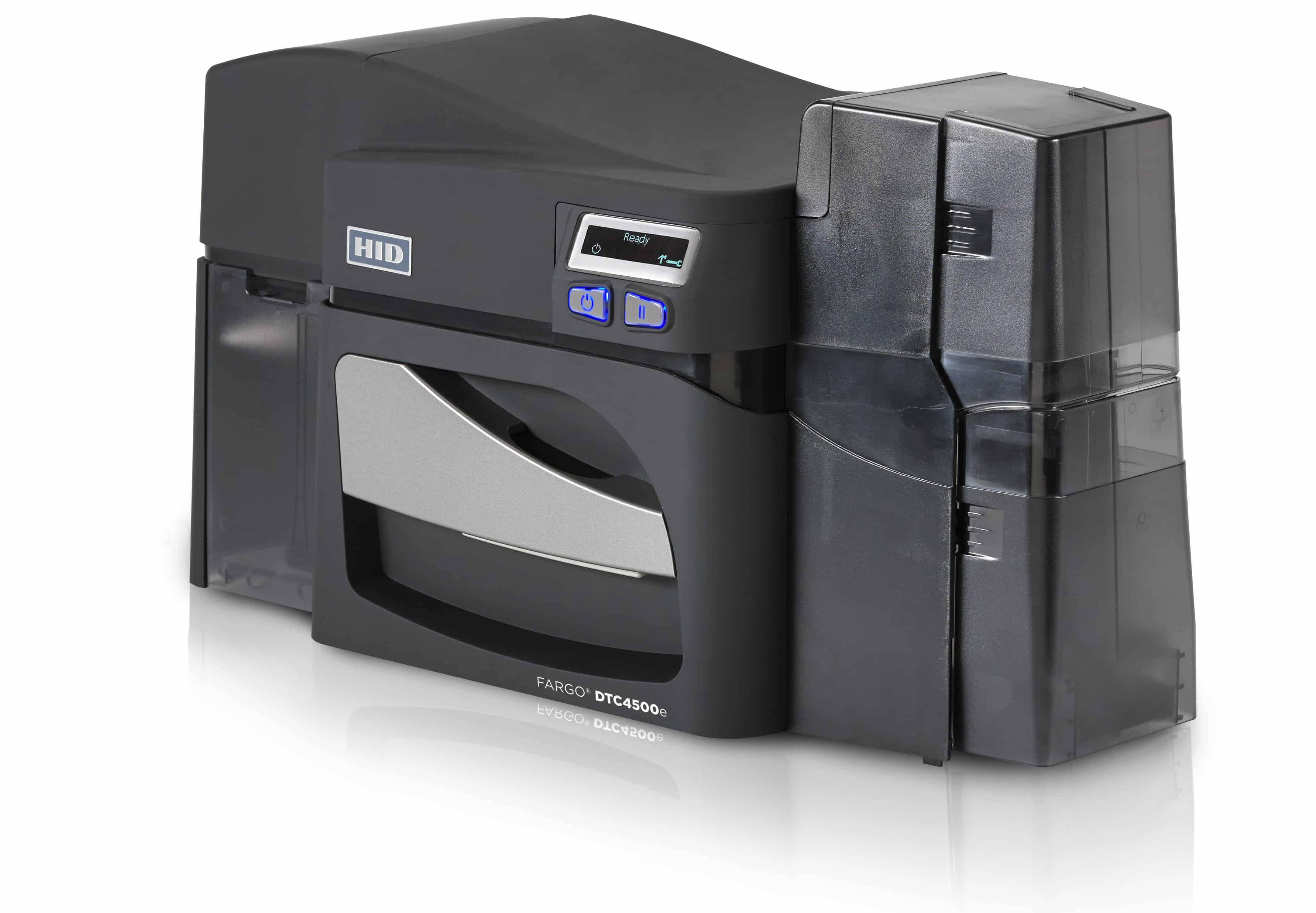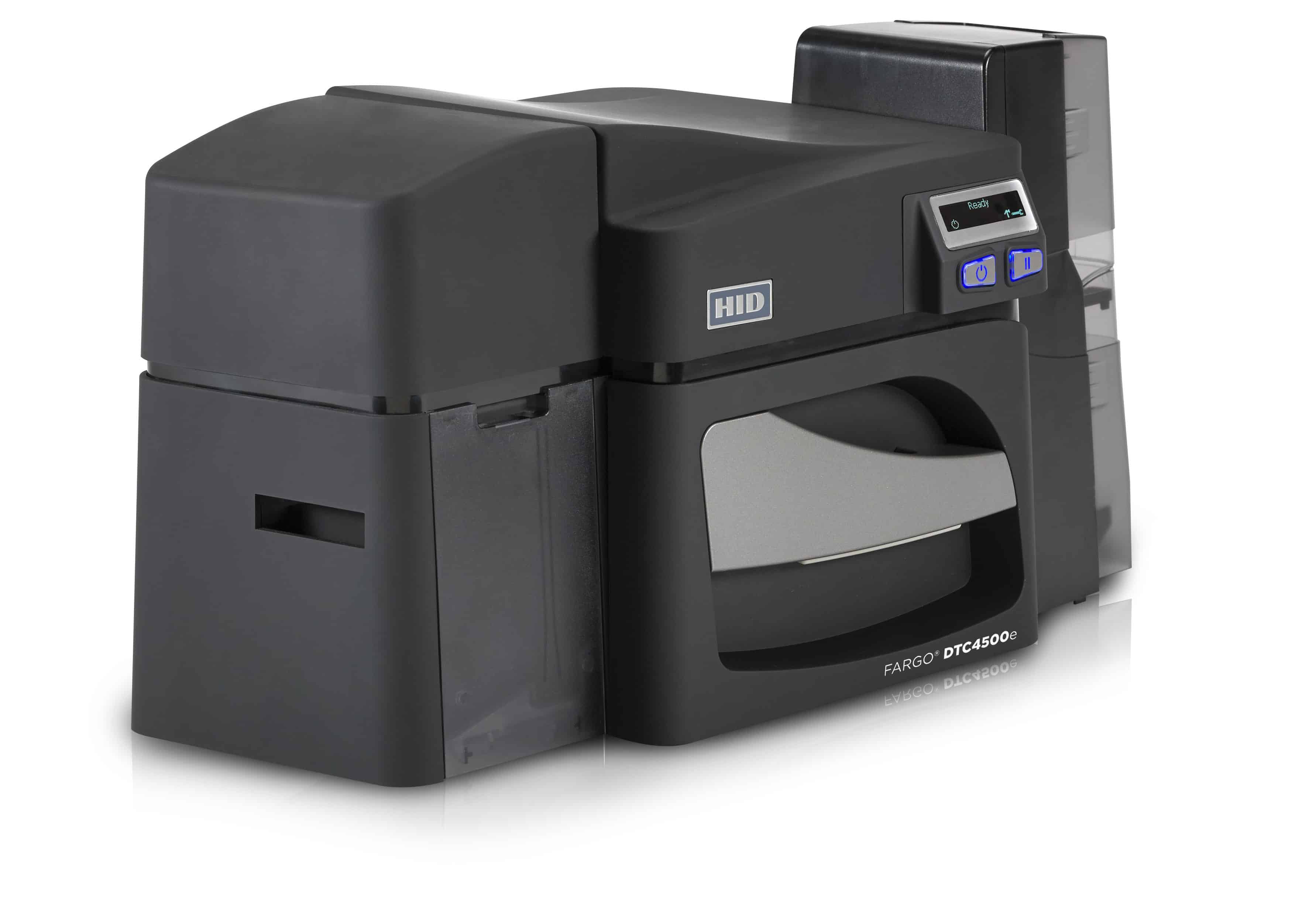 L’imprimante de cartes d’identité HID FARGO DTC4500e est idéale pour les organisations en quête d’une solution robuste pour l’impression de grandes quantités de cartes au quotidien. Les caractéristiques de série comprennent des rubans consommables à haute capacité et un chargeur double offrant une capacité maximale et une gestion pratique de plusieurs types de cartes.